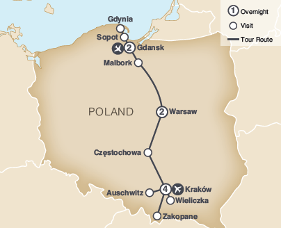 This trip includes round trip airfare from Des Moines, motorcoach transportation, 13-meals: 8-breakfasts, 2-lunches and 3-dinners. This tour includes an excursion to Auschwitz-Birkenau Concentration Camp Museum, the Jewish Quarter of Kazimierz, Two nights in Gdansk, full day of sightseeing tour of Gdansk with visits to St. Mary's Church and Sopot Pier, visit to the Castle of the Teutonic Order of Knights in Malbork, Two nights in Warsaw, Full day sightseeing tour of Warsaw with visits to the Royal Castle and Warsaw Rising Museum, A visit to Czestochowa to visit Jasna Gora, the most important Marian shrine in Poland, Four nights in Krakow. In addition, experience the unique architecture in the scenic town of Zakopane.
